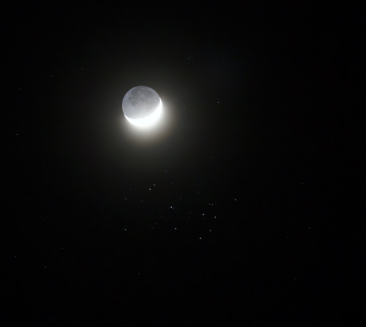 Conjonction de la lune et des Pléiades, 1 avril 2025