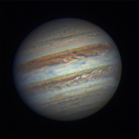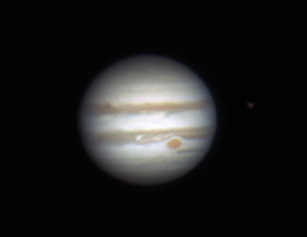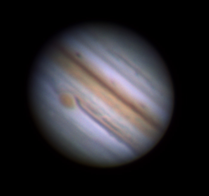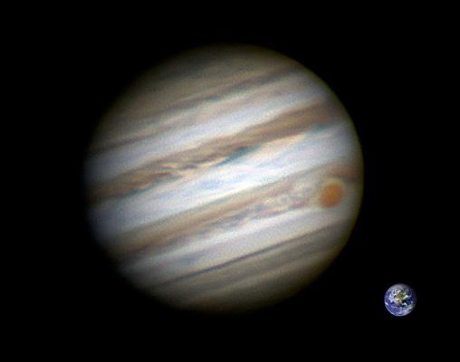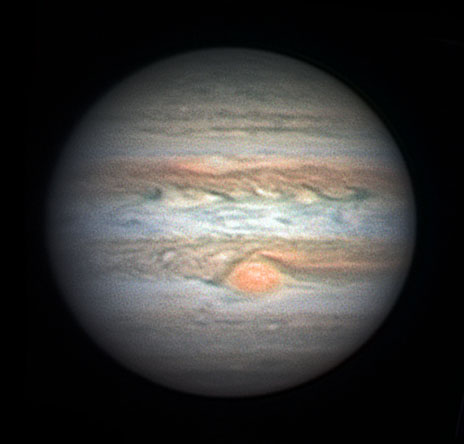 Notez la tache rouge qui est observée depuis 1665 et qui a diminué quelque peu en dimension ces dernières années.