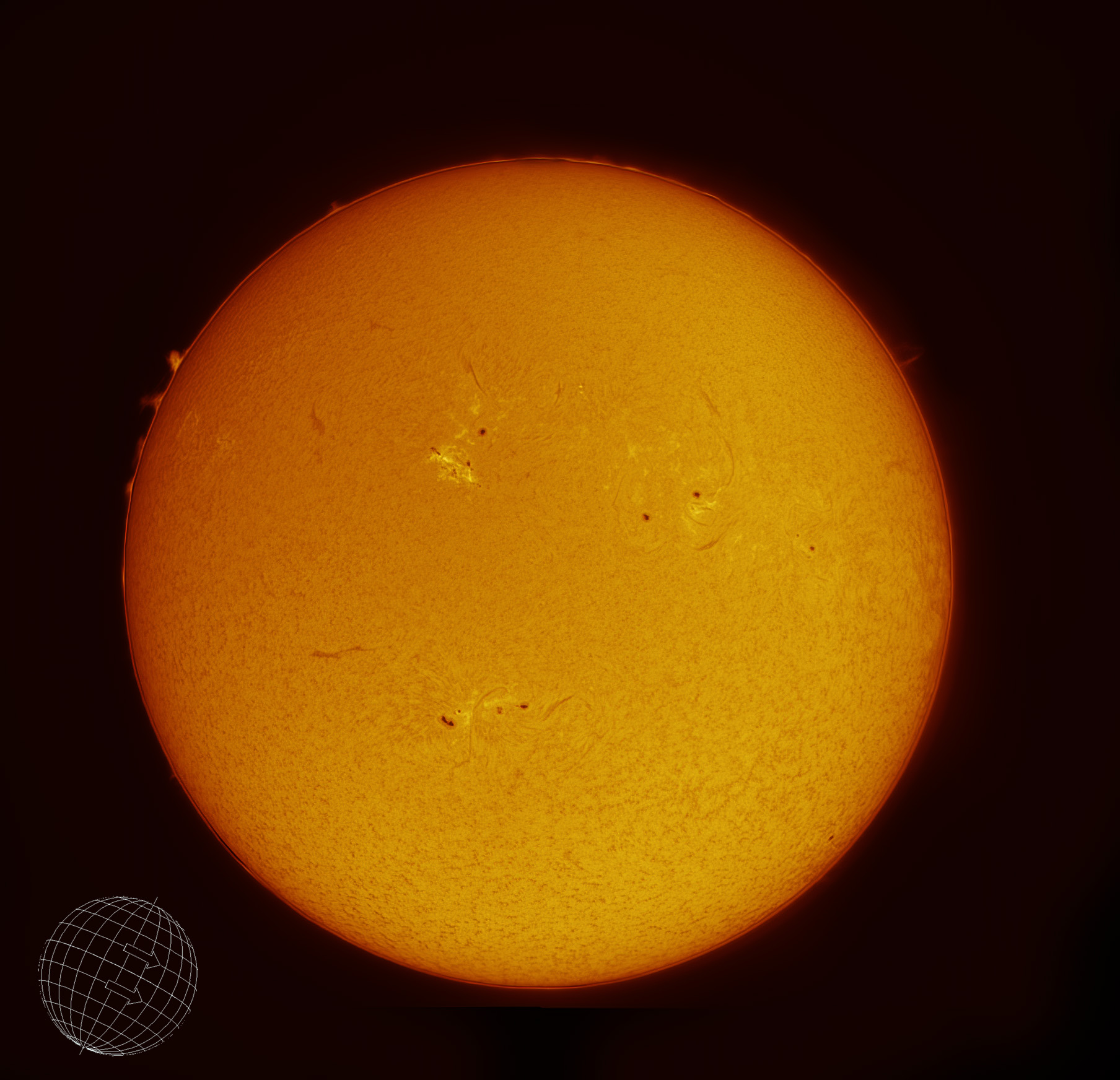 Soleil du 2 avril 2026 à 12h avec la lunette Lunt 60mm et caméra ASI585 monochrome.