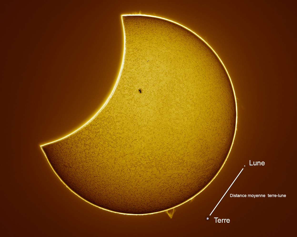 Le soleil englobe 100 fois le diamètre de la terre environ à l'équateur.