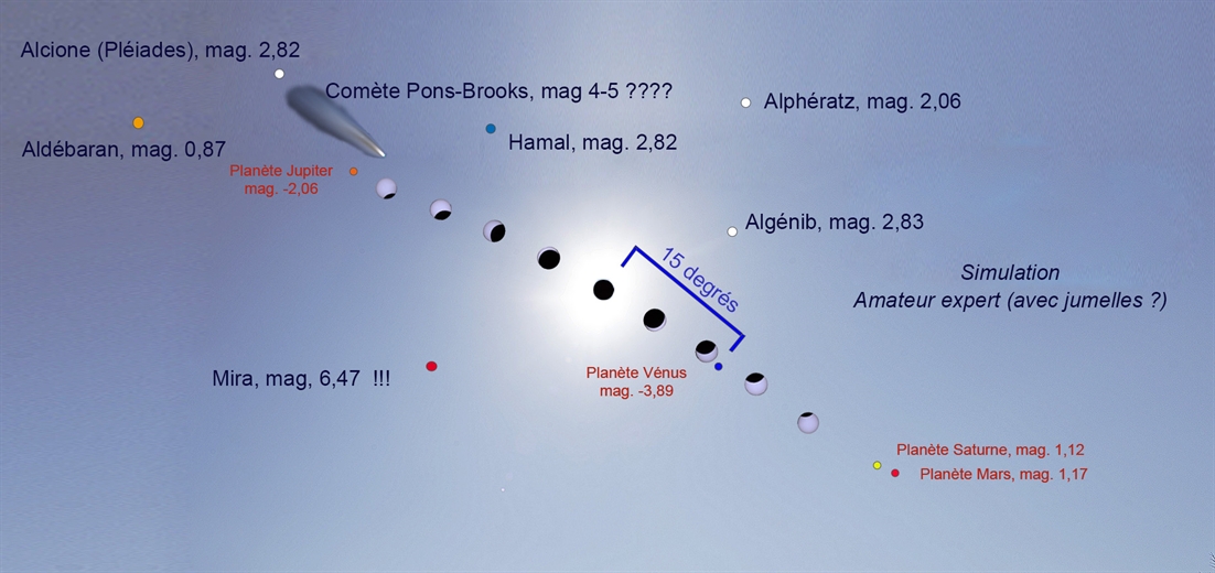 Une comète sera près de Jupiter mais elle sera difficile à voir. Sa brillance est toutefois imprévisible et certains pensent qu'on pourrait la voir avec des jumelles sans filtre durant la totalité.