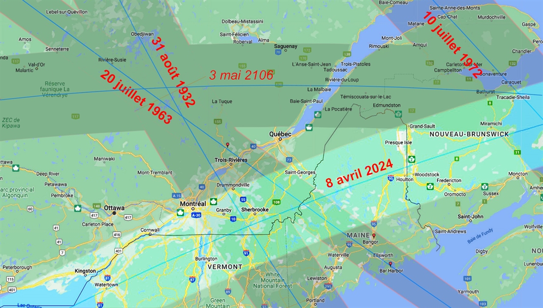 175 ans d'éclipses totales du soleil au Québec