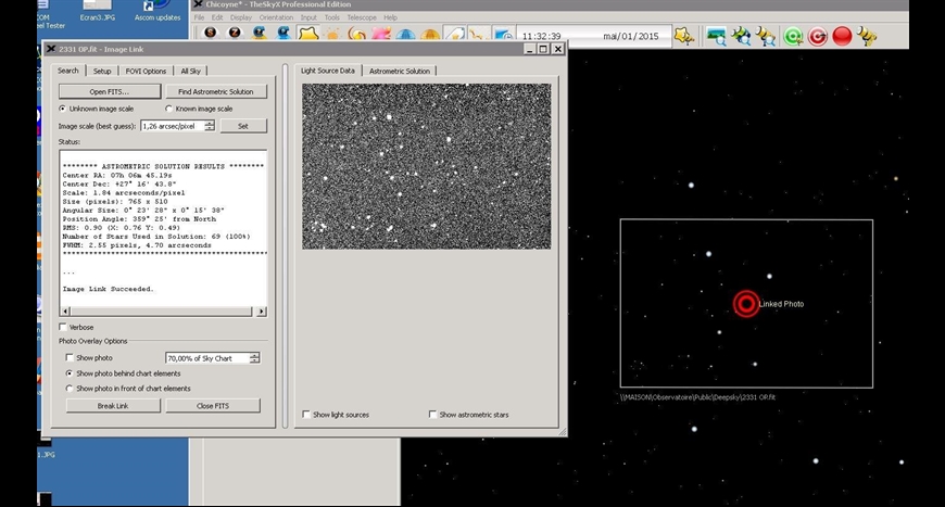 -Pour le solaire H-Alpha, la caméra ASI 174 monochrome et la Istar Phantom 140 à f/28 et le filtre Daystar Quark chromosphère et ERF 140mm ARIES.