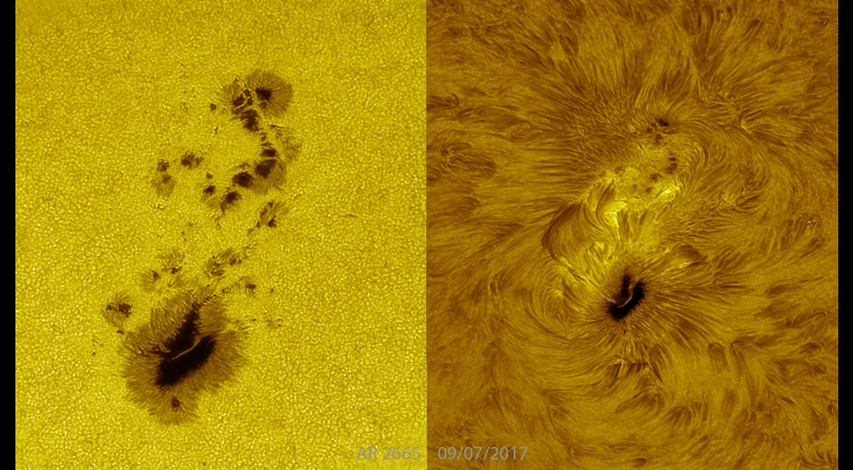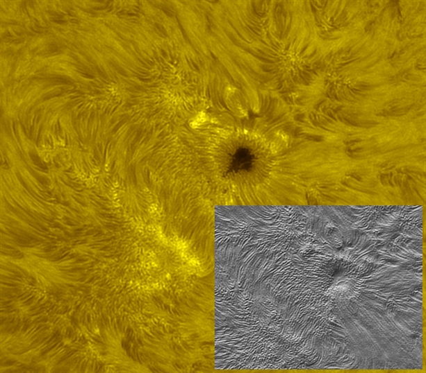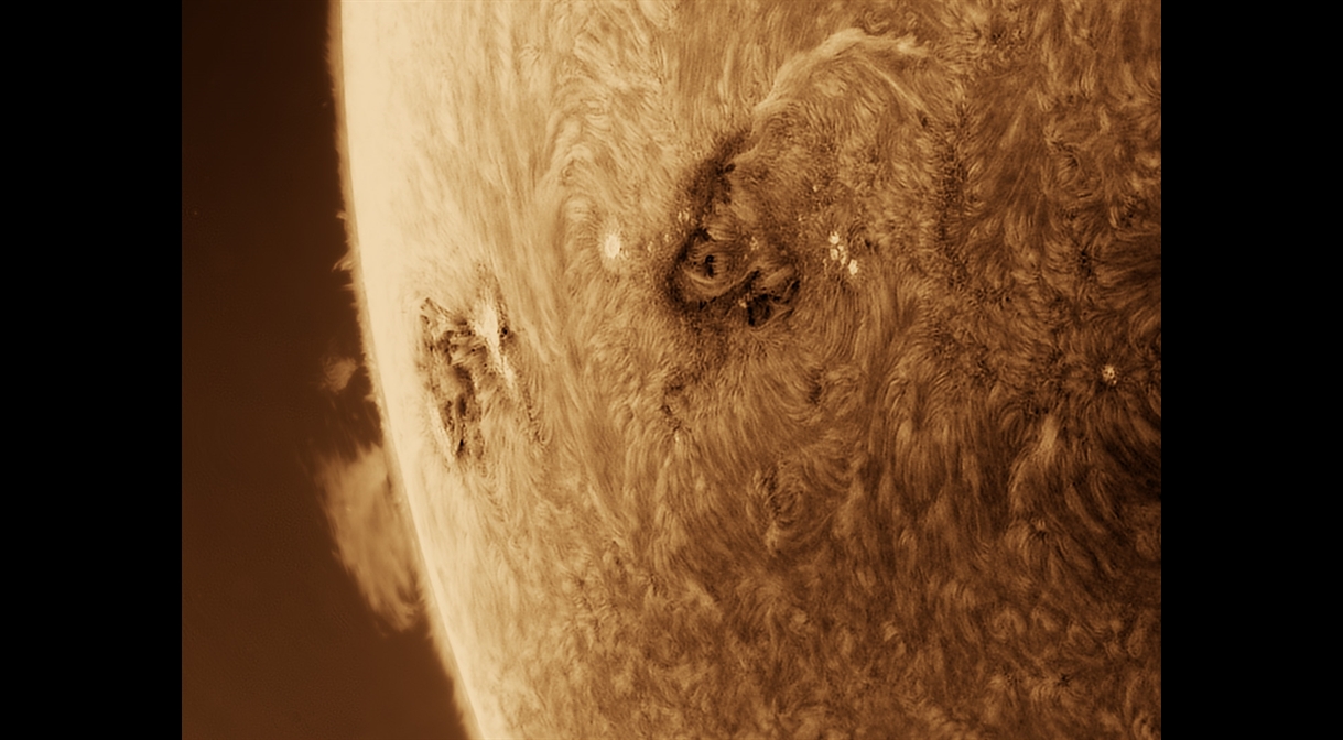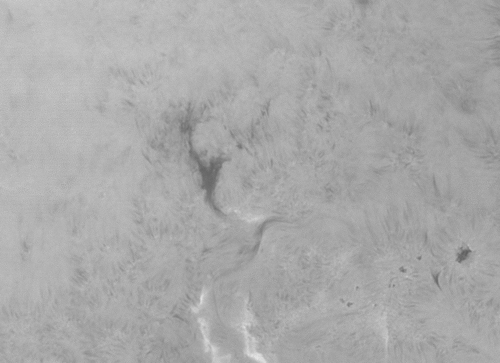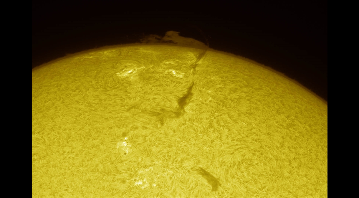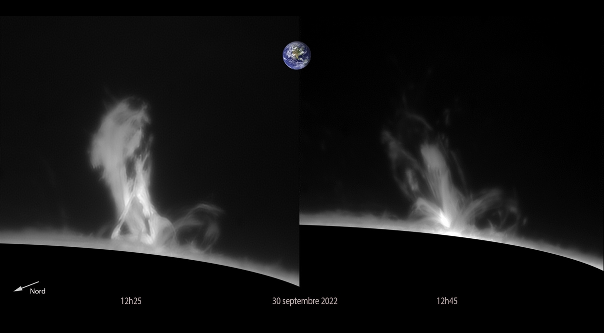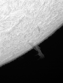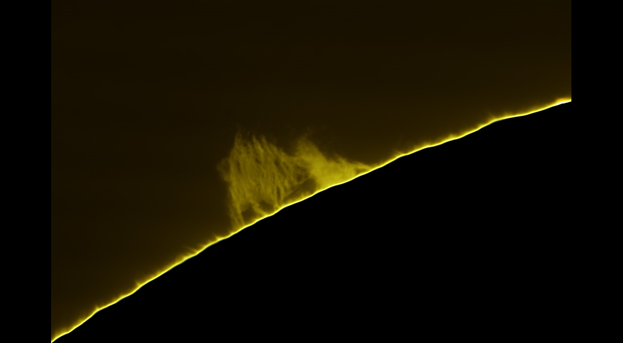 La ''lumière H-Alpha'' autour de 656 nm sur le spectre nous permet de voir les protubérances et la chromosphère en altitude, entre 100 et 2000 km, où les gaz très chauds sont perturbés par les champs magnétiques.